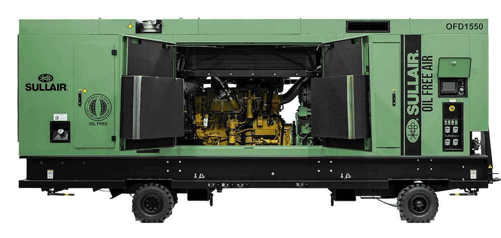 The Sullair OFD1550 Tier 3 air compressor is built for long-lasting performance and brings Class 0 Oil Free Air directly where it is needed — plantside, refineryside — and jobsite!